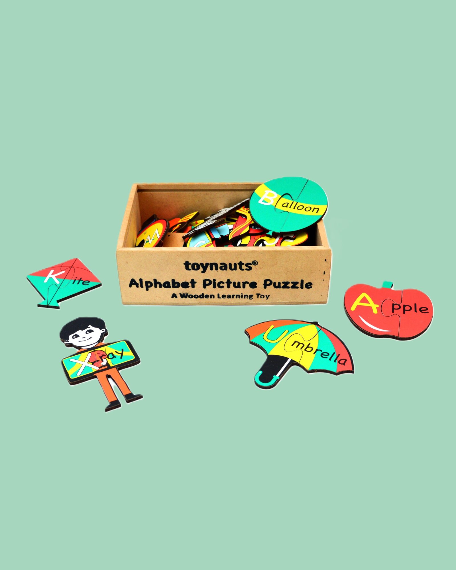 PUZZLE DESIGN: Two-piece jigsaw format with matching letters promotes letter recognition and cognitive development.