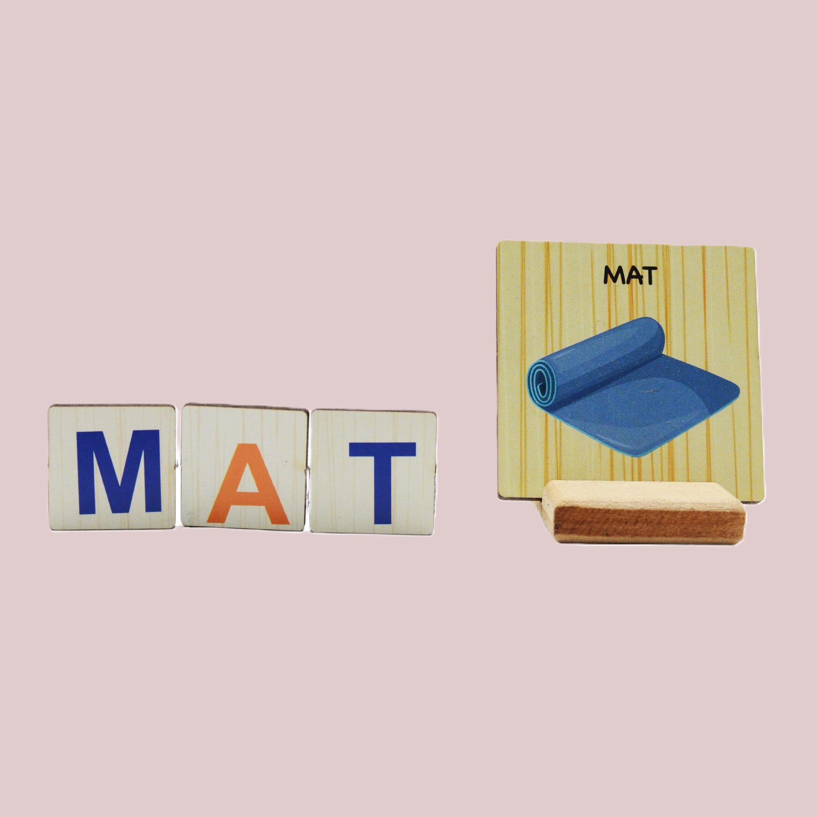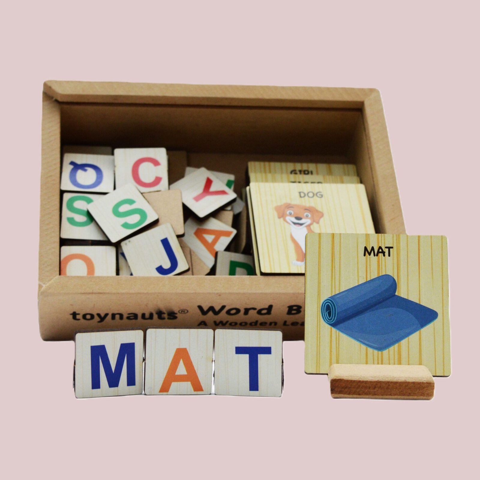 EDUCATIONAL VALUE: Montessori-based word building puzzle with 70+ alphabet tiles and 20 picture cards for developing spelling, vocabulary, and phonics skills.